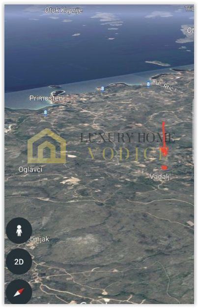Na prodaju građevinsko zemljište površine 1645 m2. Zemljište se nalazi u mjestu Vadalj ( zaleđe Primoštena ) i ima pogled na more, urednu dokumentaciju i pravilnog je oblika. Zemljište je udaljeno od centra Primoštena 5 km.