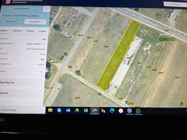 Atraktivno građevinsko zemljište uz prometnicu Andrije Kacica Miošica i Fausta Vrancica, cesta sa dvije strane. Širina 23 metra. Vlasništvo 1/1. Mogućnost kupnje i susjedne parcele.