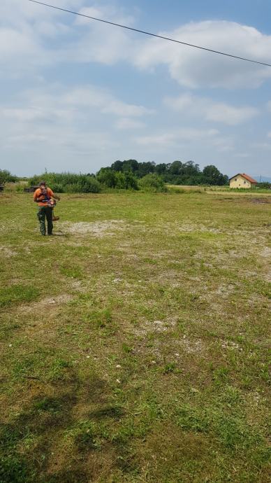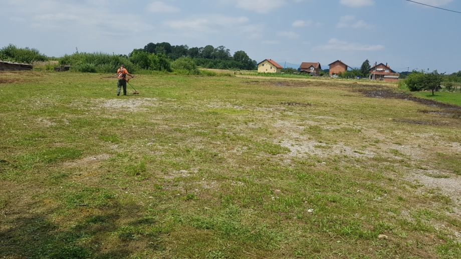 Pola zemljišta je nasuto zemljom a pola tvrdim materijalom i korišteno je za parking kamiona i priručno skladište građevinskog materijala.