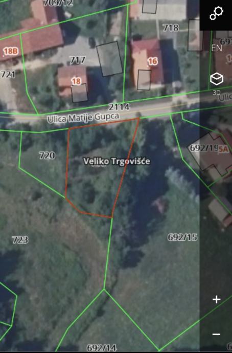 Prodaje se građevinsko zemljište u centru Velikog Trgovišća koje se nalazi u zoni gradnje. Odlicna lokacija. Mirna ulica. Blago povišen teren. Lijep pogled.