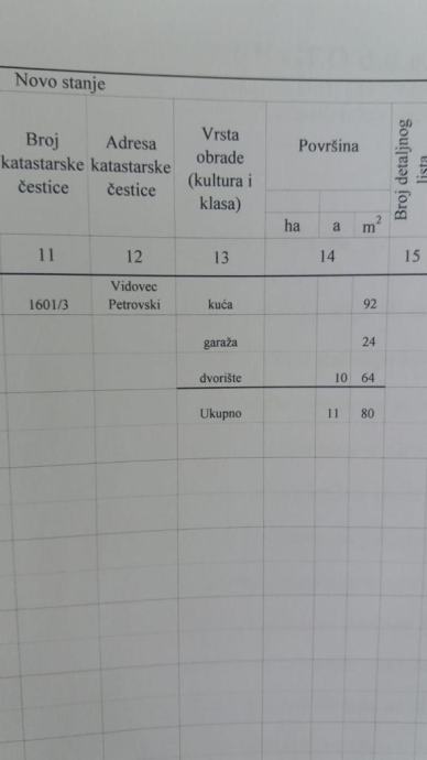 Sastoji se od GRAĐEVINSKOG DIJELA veličine: 1064m2 i POLJOPRIVREDNOG DIJELA veličine: 1547m2