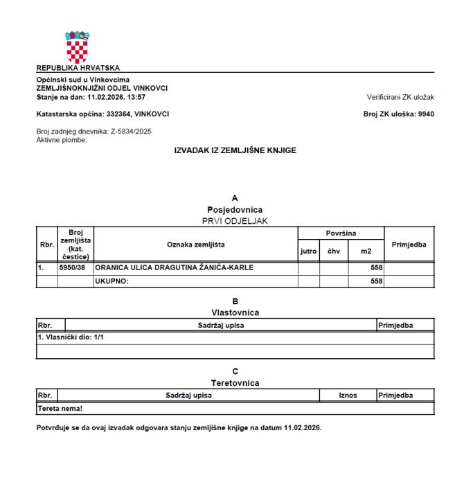 Prodaje se građevinsko zemljište u naselju Kanovci, Vinkovci.