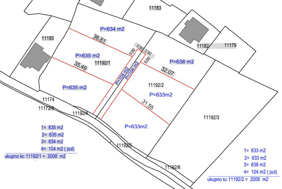 U ponudi je nekoliko sličnih parcela površine od 633 m2 do 638 m2 i pravilnog oblika.