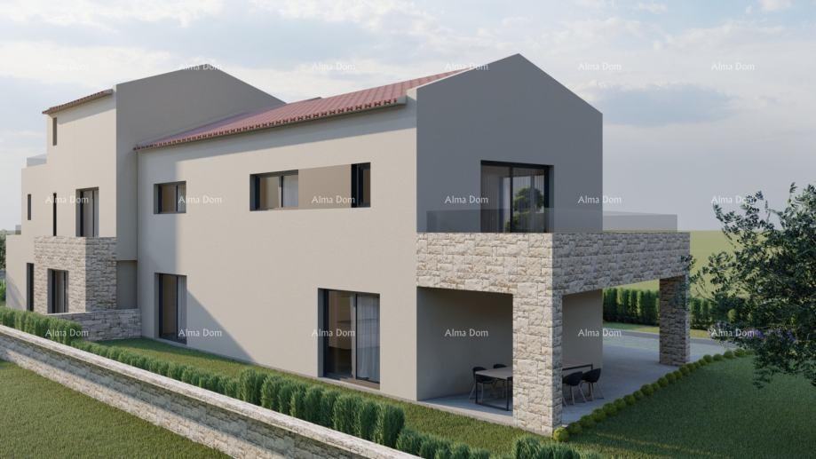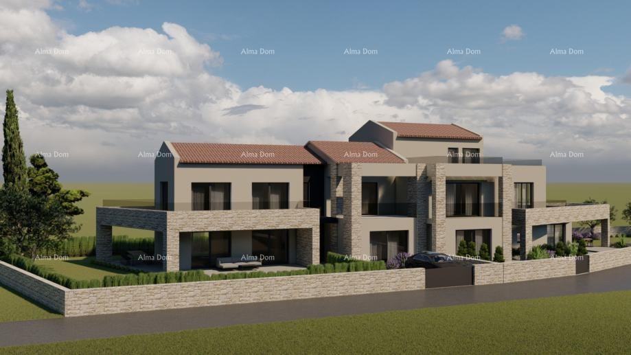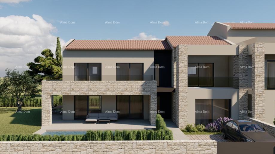 Projektirana je moderna kuća neto površine 211,39 m², s natkrivenom terasom u prizemlju površine 44,29 m² te bazénom od 30 m². Koncept objekta uključuje prostrani dnevni boravak, četiri spavaće sobe, teretanu i bazen, što ga čini idealnim za obiteljski život ili turističku namjenu.