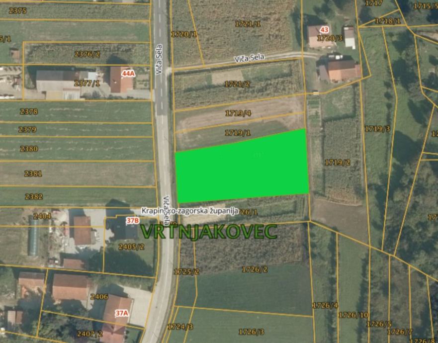 Prodajem građevinsko zemljište u Vrtnjakovcu površine 1776 m2, na glavnoj cesti, pravokutnog oblika, 4 km do Krapinskih toplica.