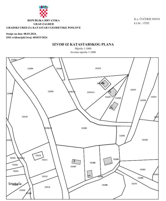 Katastarska čestica: 15292, k.o. Čučerje Novo