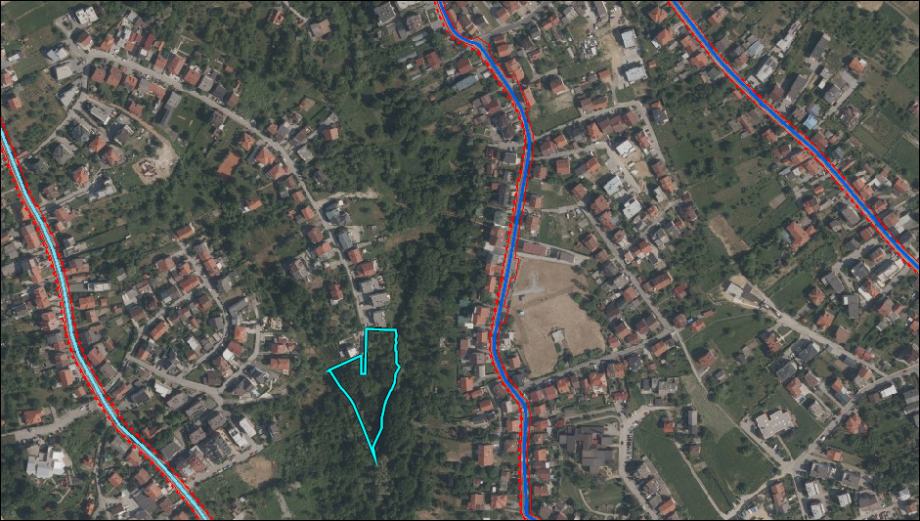 Manji dio zemljišta je u zoni zelenila (Z) i koridoru posebnog režima potoka (što ne sprječava gradnju u dijelu pod oznakom S i 2.2.)