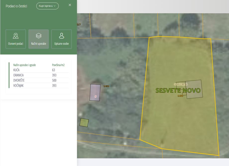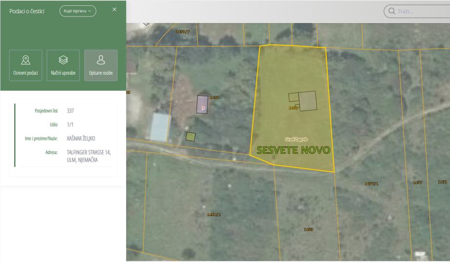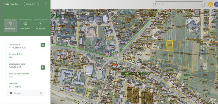 prodaje se zemljiste 1349 m² u centru Sesveta, na ravnom, skoro kockasto, vise informacija na katastar.hr, GU Zagreb, Sesvete novo, Katastarska cestica 1460