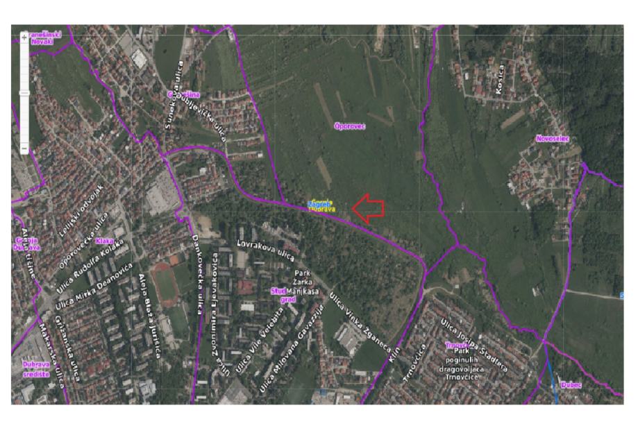 Loakacija zemljišta se nalazi u novom koridori produžetka Ulice Rudolfa Kolaka (radovi započeli) u gradskoj četvrti Oporovec, preko puta gradske četvrti Studenski grad i u neposrednoj blizini gradske četvrti Trnovčica.