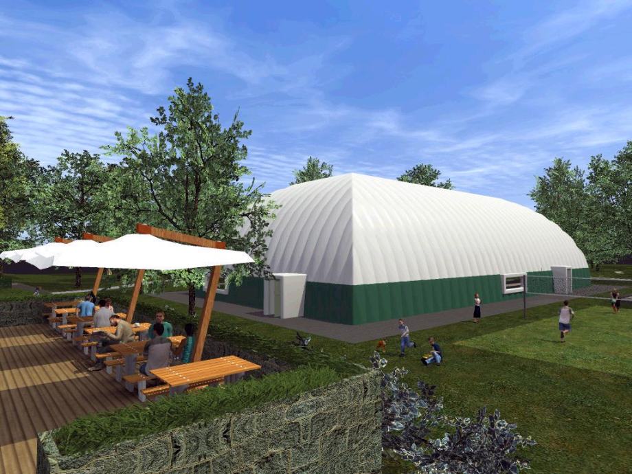 Građevinskom dozvolom predviđena je izgradnja rekreacionog centra sa objektom od 400 m2 što obuhvaća prizemlje i podrum. U prizemlju se nalazi restoran sa terasom. U podrumu je teretana , svlačionice i vinski podrum.