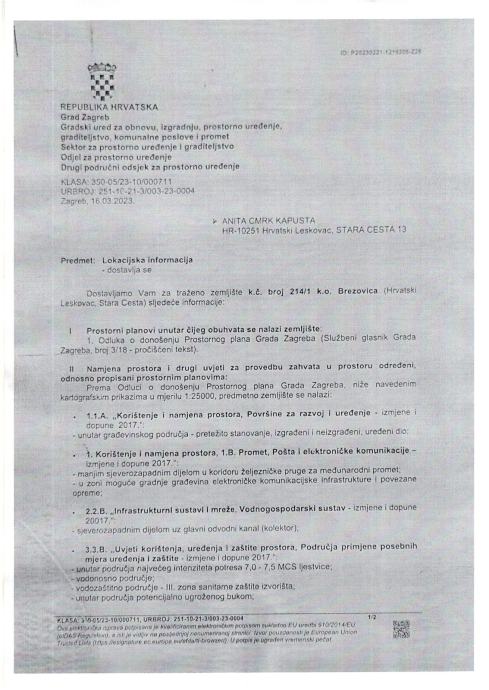 Građevinsko zemljište ,pravilnog oblika, ravno položeno,udaljeno je od petlje Lučko oko 1400 m, ai sto tako i od izlaza Demerje.