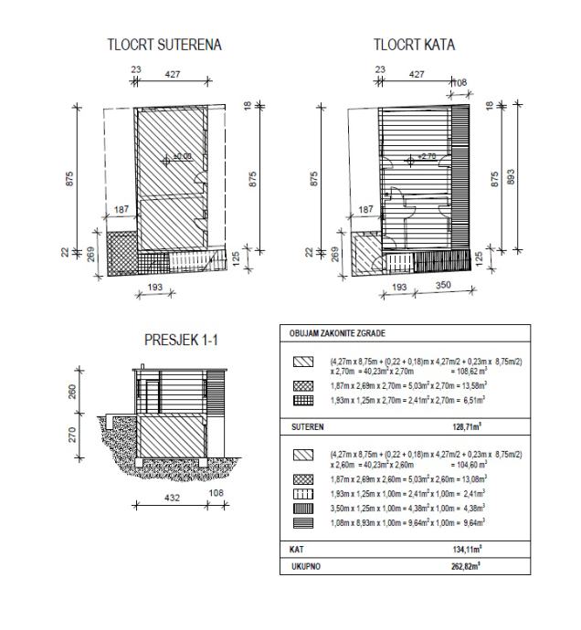 tlocrtna dimenzija zgrade 11,10m x 11,40m