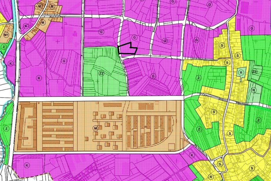 Zapadni dio parcele u površini od 425 m2 rezerviran je za formiranje koridora ceste. Ostatak parcele površine 4.663 m2 nalazi se u dijelu predviđenom za gospodarsku namjenu, u zoni urbanih pravila 3.1. (proizvodne, poslovne, uredske zgrade, ugostiteljske zgrade i hoteli, trgovački prodajni centri, sportsko rekreacijske zgrade, javne i društvene zgrade i benzinske postaje).