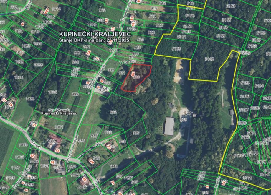 Prodaje se građevinsko zemljište u Kupinečkom Kraljevcu površine 2520 m2, na kojem se nalazi kuća tlocrtne površine 34 m2, katnosti suteren + prizemlje. Parcela je širine cca 42 m u smjeru istok – zapad, te dužine cca 60 m u smjeru sjever – jug. Nalazi se u građevinskom području, a graniči sa zonom gospodarske šume. Kuća ima priključak struje, a instalacija vodovoda je u ulici Štrpet II. odvojak. Stanica ZET-ovog autobusa je udaljena cca 200 m od kuće. Parcela se nalazi u mirnom susjedstvu obiteljskih kuća i vikendica. Kuća je legalna, vlasništvo je čisto, 1/1.