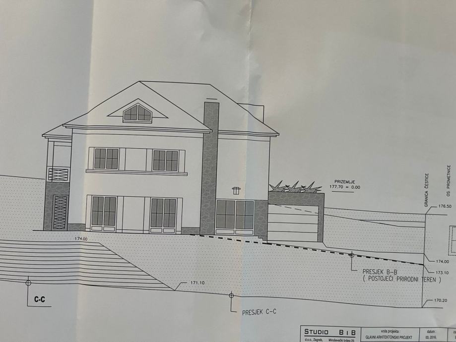 Na zemljištu je ishodovana pravomoćna građevinska dozvola ukupne građevinske bruto površine 302,80m2 sa jednom stambenom jedinicom, visine tri nadzemne etaže (Su+Pr+Ptk).