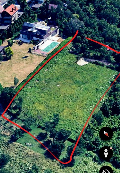 Površina zemljišta iznosi 4300 m², kompletno u stambenoj zoni (sve susjedne parcele u zelenoj zoni!).
