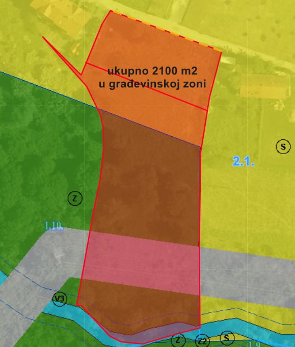 Namjena površina: građevinski dio u zoni S (stambena namjena), urbano pravilo 2.1., a negrađevinski u zoni Z (zaštitne zelene površine), urbano pravilo 1.10.