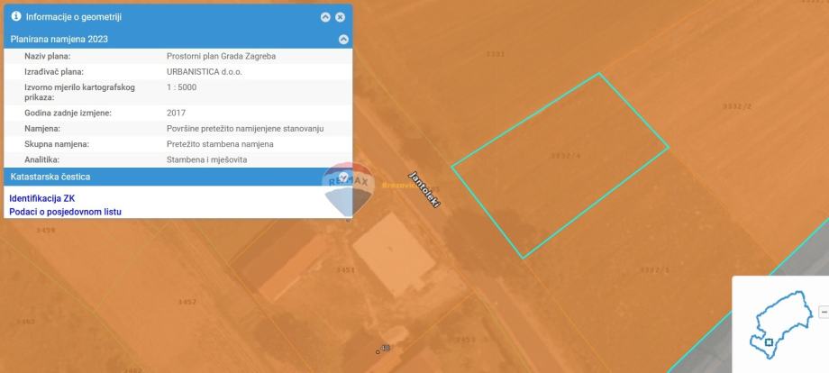 Zemljište se nalazi unutar građevinskog područja Grada Zagreba.