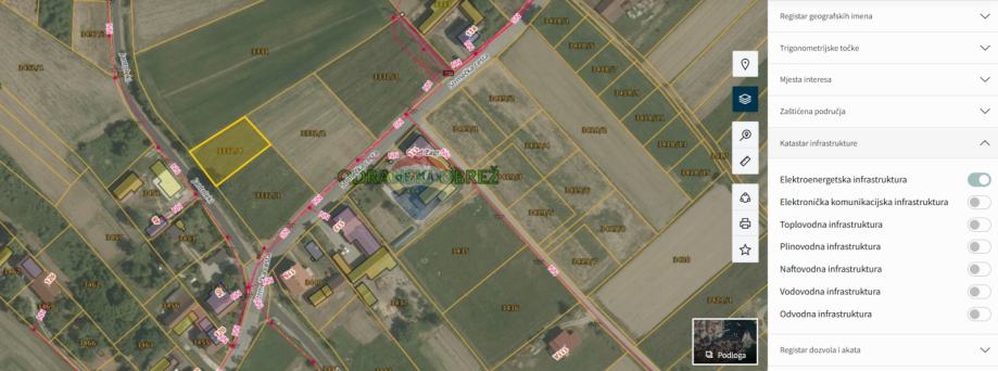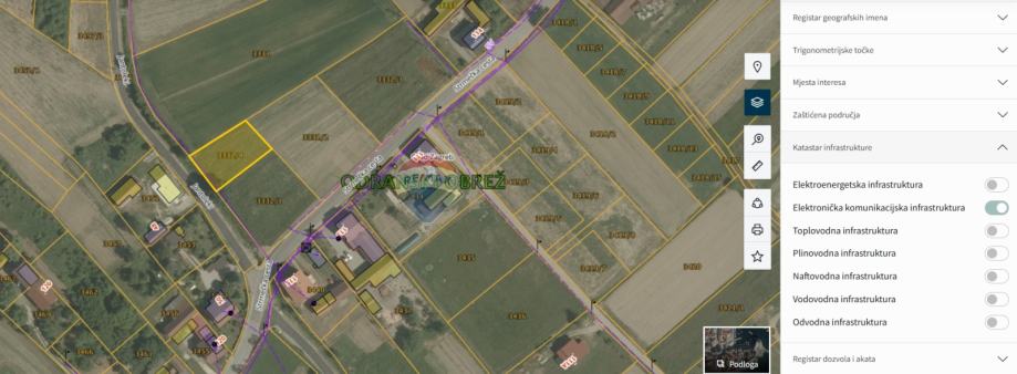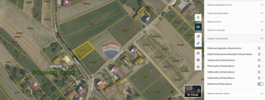 Pored parcele dostupni su: voda, struja, kanalizacija i elektronička komunikacijska infrastruktura.