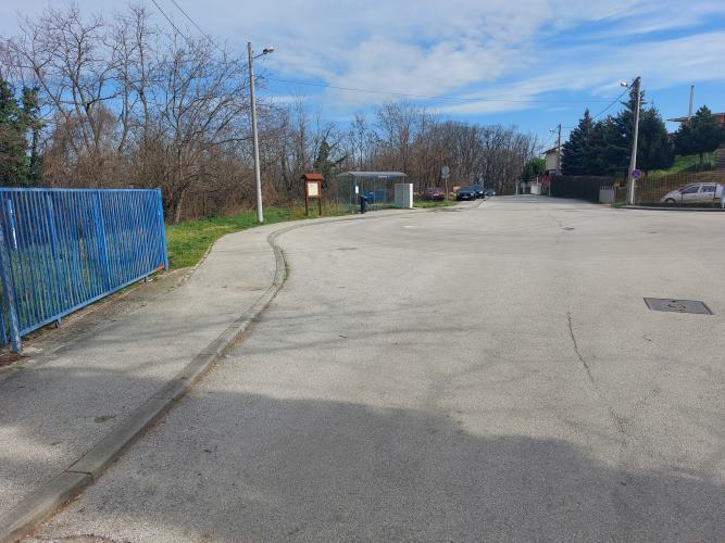 Pravokutnog je oblika, širine 20 m, dijelom na kosini, cca 805 m2 je u stambenoj namjeni (minus 33 m2 u vlasništvu HEP-a), cca 920 m2 je u zelenoj namjeni.