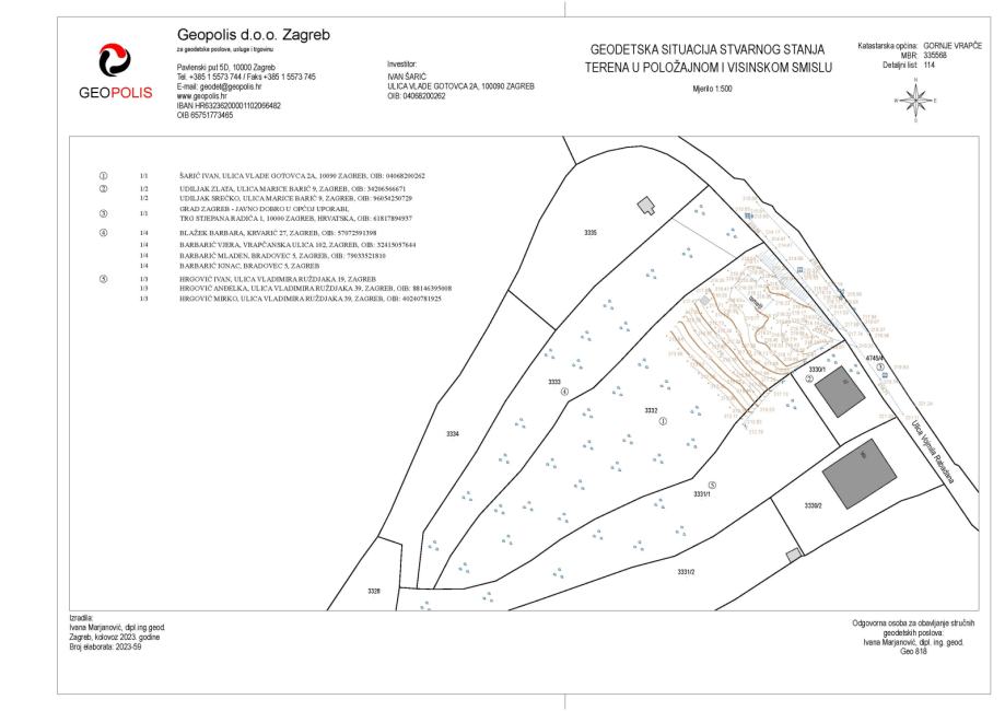 Predmenta parcela je evidentirana u katastru kao k.č. 3332 k.o. Gornje Vrapče.Parcela se nalazi na spoju jugozapadne Kustošije s Gornjim Vrapčem, ulica Vojmila Rabadana broj 23.Prema katastru površina parcele iznosi 2102 m2. Parcela je očiščena od stabala i ostataka prijašnjih manjih građevina te teren snižen za otprilike 1m, za lakše planiranje gradnje. Imam elaborat koji analizira građevinski potencijal ove parcele, koji šaljem zainteresiranima na whatsapp ili email.