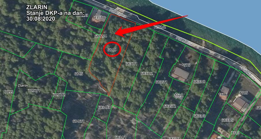 ZLARIN ( katastarska općina Zlarin ) z.k.ul.br. 6844 - ukupne površine 1786 m2 (cijena 150€/m2 ).