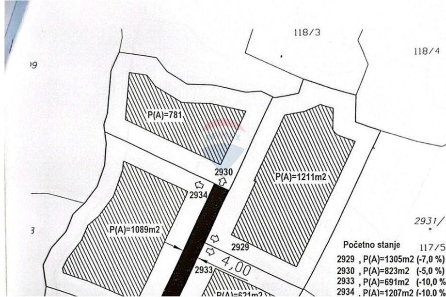 Zemljište je dimenzija cca 20m x 35m, a pristupni put do parcele je širine 4m..