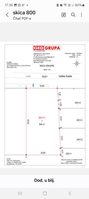 Prodajemo građevinska zemljista(placevi) u ulici Velike livade, Županja. Placevi su s ljeve strane ulice u nizu. U ulici je provedena struja,voda,kanalizacija ,telefon i savalt do sredine ulice. Placevi su: 20x40 (800m2) po 20000e, 18x40 (720m2) 7 placeva po 18000e, 15x40 (600 m2) 11 placeva po 15000e, 41x54 ( 588 m2) po 14700e. Mob: 0976672266
