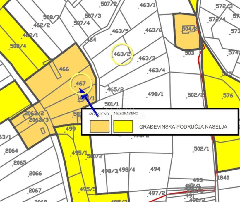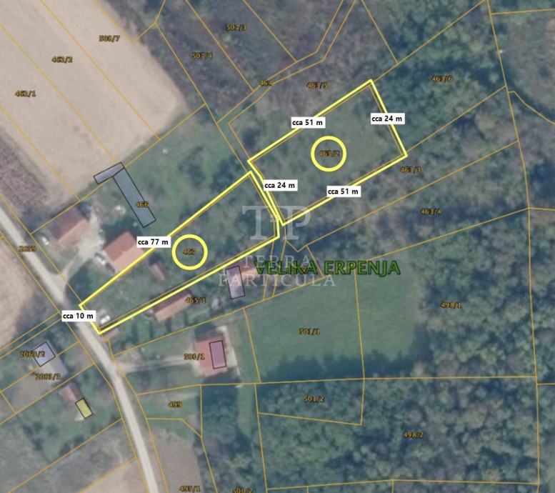 Od toga jedna od 1.341 m² se nalazi u građevinskoj zoni, dok je druga iste veličine van te zone. Svi priključci su uz njega. Od Termi Tuhelj udaljeno je cca 2,5 km. Vlasništvo je čisto, bez tereta, 1/1.