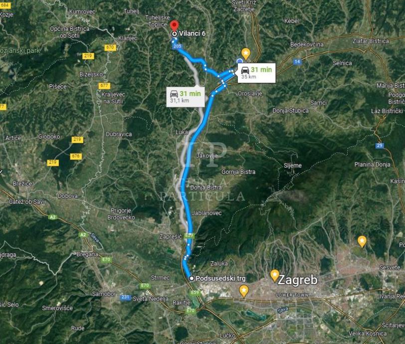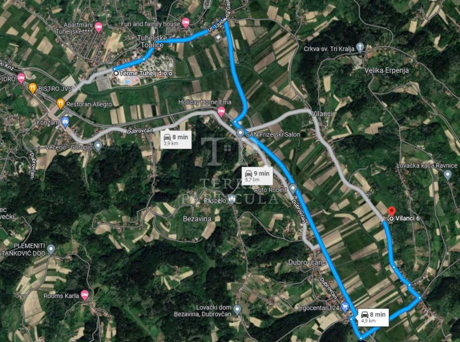 Prodajemo građevinsko zemljište u Vilancima 5, u blizini Tuheljskih Toplica s pogledom na bazene, koje se sastoji od dvije katastarske čestice površine 2.682 m².