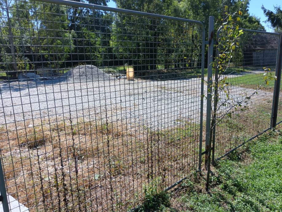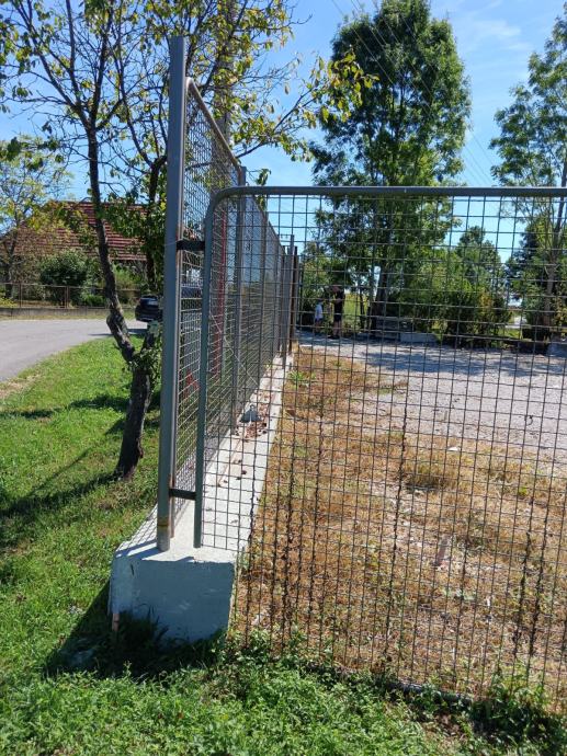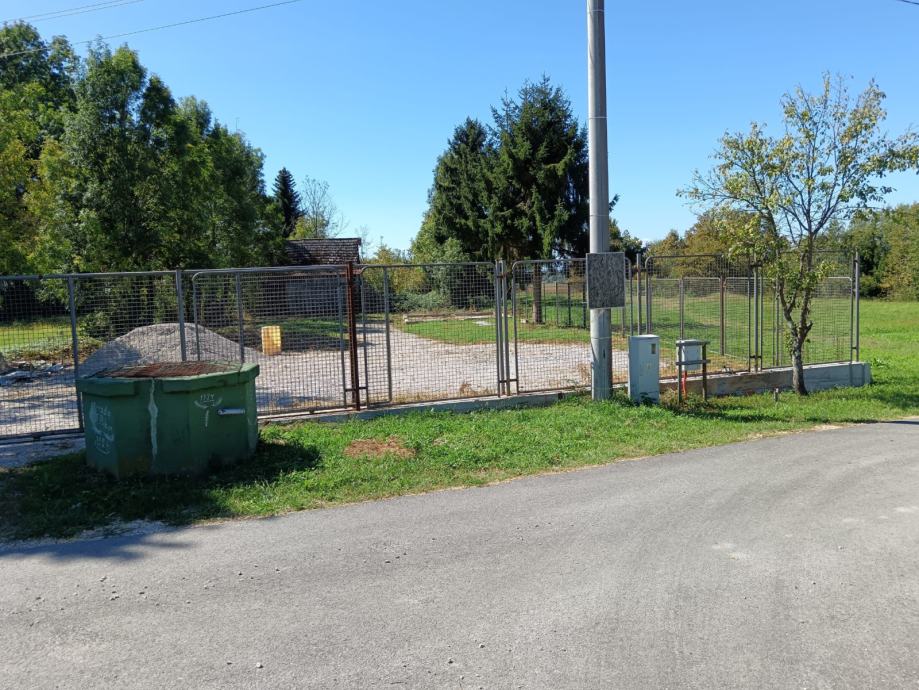 Gradilište je u potpunosti ograđeno, betonski temelj ograde, klizna vrata na daljinsko upravljanje, priključak struje, površinski sloj terena nasut šljunkom.