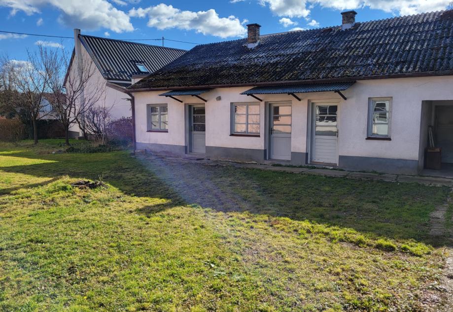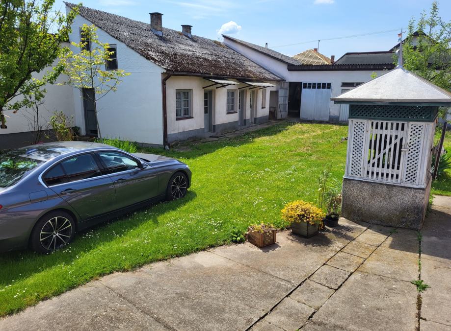 Kuća površine 150m2 sagrađena na parceli gotovo idealnog oblika površine 1033m2 nalazi se u Novoj gradiški (Mala 17) udaljena 5 minuta pješke od centra grada (korza) i bolnice.
