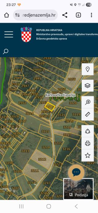 Prodajem gradjevinsko zemljište površine 899 m2 u blizini rijeke Korane uz glavnu cestu za Zastinje.