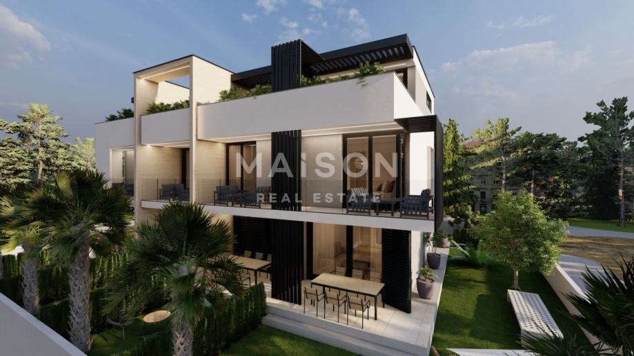 Ovaj prostrani apartman prostire se na tri etaže. U prizemlju se nalazi ulazni prostor, kuhinja s blagovaonicom i dnevnim boravkom, toalet, stubište te terasa od 10 m² s izlazom na vrt površine 15m².