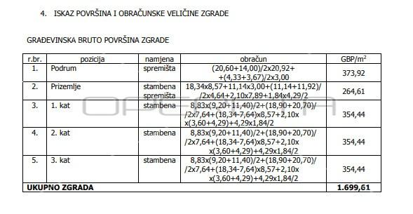 Stambena zgrada, čija je gradnja započeta 2007.godine izvedena je u roh bau stanju. Treći kat je djelomično izveden (stupovi, stubište i zidovi oko stubišta), a djelomično su pušteni nastavci armature za izvedbu stupova trećeg kata.