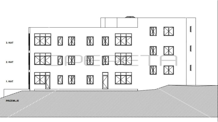 u podrumu organizacija spremišta. U prizemlju se predlaže izgradnja jednog velikog stana kojem je moguće dodijeliti i terase dvorišta. Osim stana u prizemlju se nalazi i hobi prostor za potrebe stanara zgrade u kojem je moguće organizirati igraonice za djecu, praonicu, sobu za sastanke i slično. Na katovima se predlaže izgradnja po četiri stana na etaži. Stanovima na 1. katu koji su sa istočne strane u ravnini terena je moguće dodijeliti vrtove.