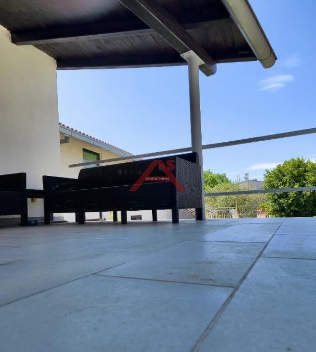 Na prvom katu je natkriveni ulaz, stepenište, hodnik, kupaonica, dnevni boravak i dvije spavaće sobe od kojih jedna ima izlaz na balkon te natkrivena terasa.