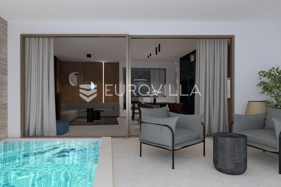 Grebaštica, luksuzan penthouse s pogledom na more, NKP 91,33 m². Uz stan dolazi i velika krovna terasa s bazenom i prostorom za sunčanje. Stan se nalazi na drugom katu moderne zgrade prvi red do mora. Pripada mu jedno parkirno mjesto u garaži, te ostava u podrumu. Površina zatvorenog prostora je 71,83 m², a površina terase je 17,05 m². Zgrada je opremljena dizalom.Stan se sastoji od dnevnog boravka s kuhinjom i blagovaonicom, dvije spavaće sobe od kojih jedna ima izlaz na balkon, kupaonice, WC-a, te prostrane terase s pogledom na more. Iznad stana je velika terasa koja se prostire cijelim krovom i ima bazen i prostor za sunčanje. Svaka prostorija ima klima uređaj, te stan ima ugrađeno i podno grijanje.Zgrada se nalazi svega 40 metara od mora. Riječ je o luksuznom projektu koji se sastoji od dvije zgrade, s ukupno 9 stanova, gdje svaki stan ima privatan bazen.Za sve ostale informacije stojimo na raspolaganju....Za ovu nekretninu kontaktirajte agenta na broj telefona +385 98 163 3268.Više na Eurovilla.hr, ID: 107845Direktan link: https://eurovilla.hr/nekretnina/grebastica-luksuzan-penthouse-s-bazenom-i-pogledom-na-more-prvi-red-do-mora-nkp-91-33-m2/107845/-----... For this property contact our agent on telephone number +385 98 163 3268.More on Eurovilla.hr, ID: 107845Direct link: https://eurovilla.hr/en/property/grebastica-luxury-penthouse-with-a-pool-and-a-sea-view-first-row-to-the-sea-91-33-m2/107845/...