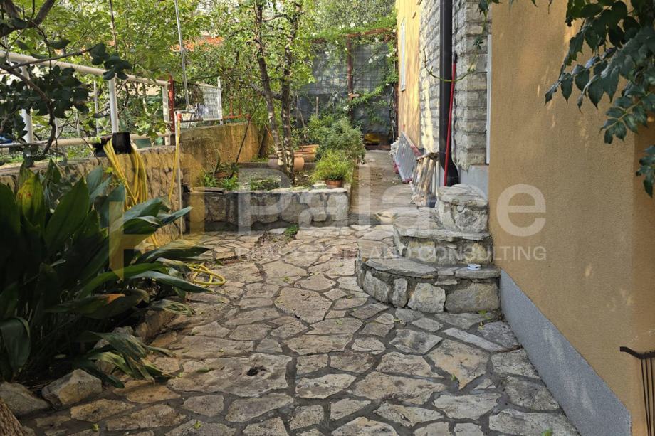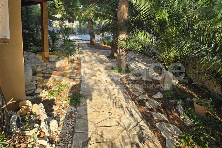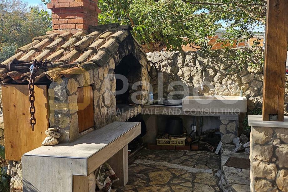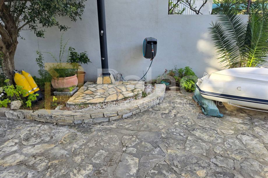 Dvorište kuće je popločano i popunjeno biljem tipično za ovo podneblje poput starih borova, a kamena pečenjara i ljetni tuš samo su neki od zgodnih dodataka ovom dvorištu.