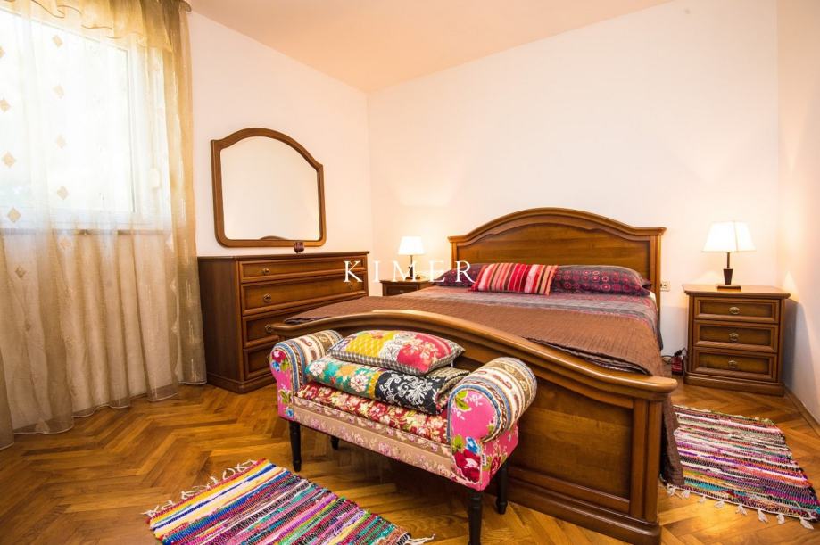 Spavaći dio je potpuno odvojen na sjevernoj strani, uključuje manje predsoblje, prostranu bračnu sobu, manju dječju i kuponicu.