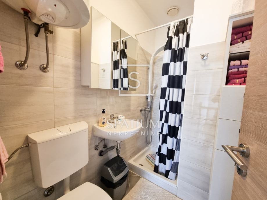 U sklopu lijepo uređene okućnice površine 200m2, nalazi se bazen sa grijanom vodom koja se grije pomoću dizalice topline, ljetna kuhinja i prostor za druženje te roštilj. U dvorištu je i parkirni prostor za dva automobila.