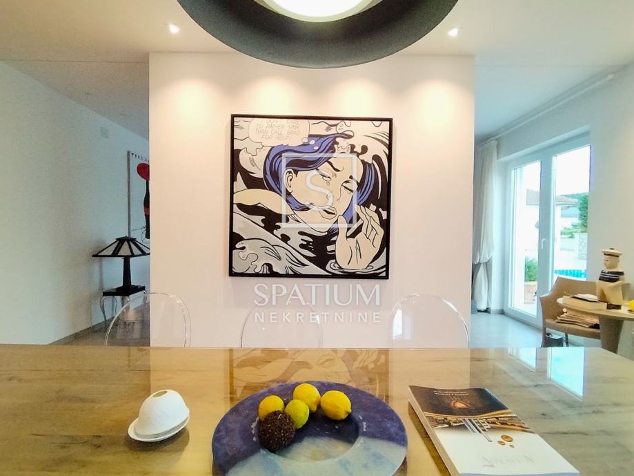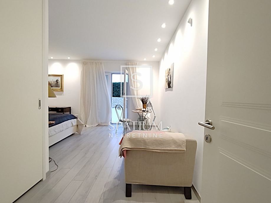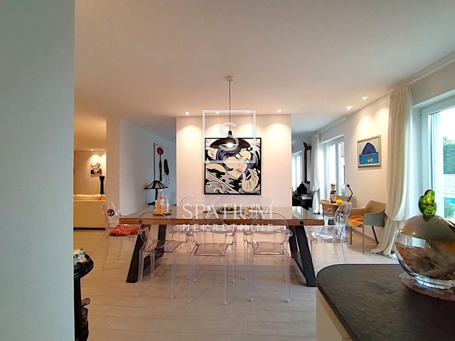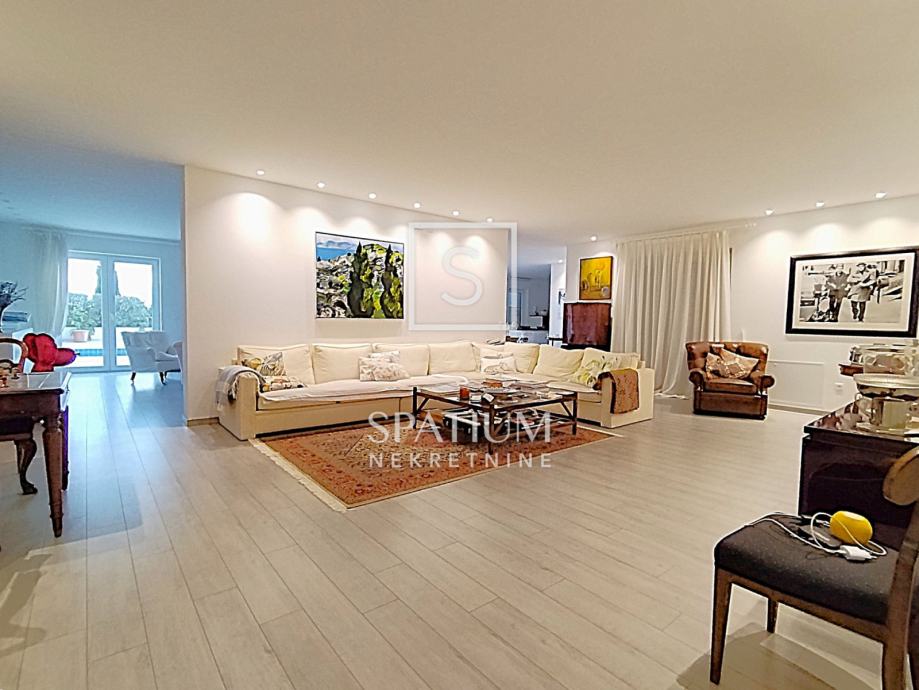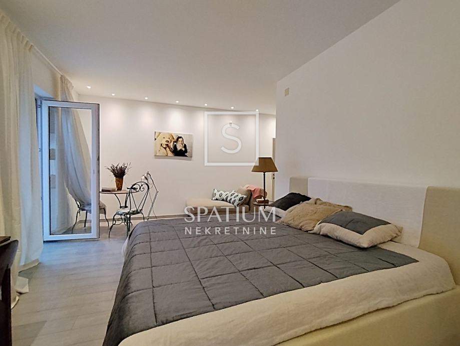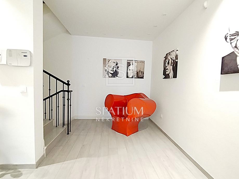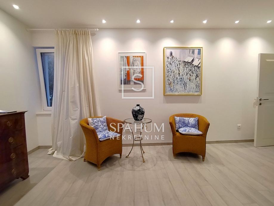 Nekretnina je ujedno namještena sofisticiranim namještajem i umjetninama koje joj daju jedinstvenost. Objekt nudi više mogućnosti stambeno poslovne namjene.