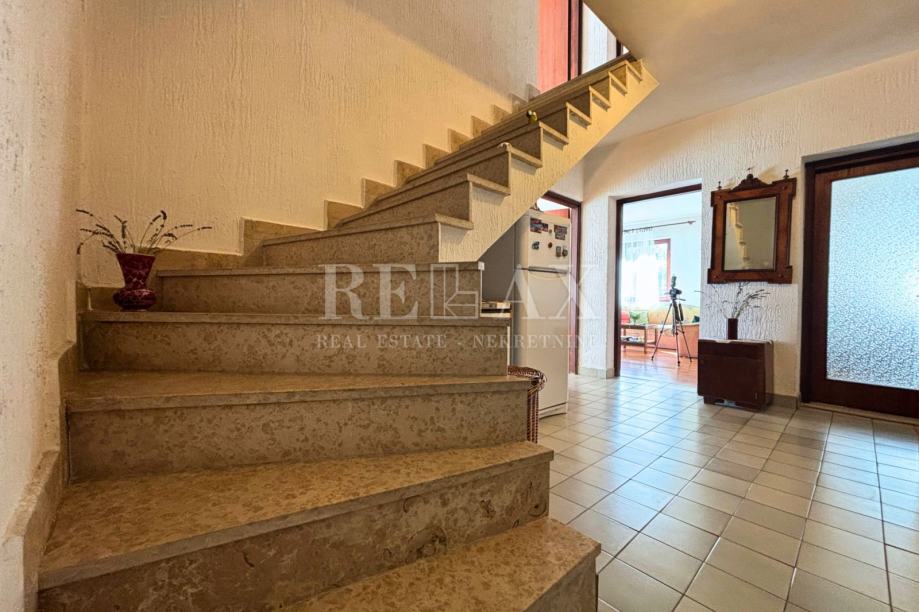 Prizemlje kuće sastoji se od ulaznog hodnika, jedne spavaće sobe, kupaonice, te kuhinje i blagovaonice koje su povezane s garažom. Dnevni boravak ima izlaz na terasu, idealnu za boravak na otvorenom tijekom toplijih mjeseci. Na prvom katu nalaze se tri spavaće sobe, svaka s izlazom na balkon, dodatna kupaonica i ostava, te terasa. Potkrovlje kuće je neuređeno, što budućem vlasniku ostavlja mogućnost uređenja prema vlastitim željama.