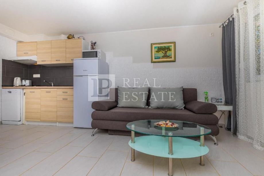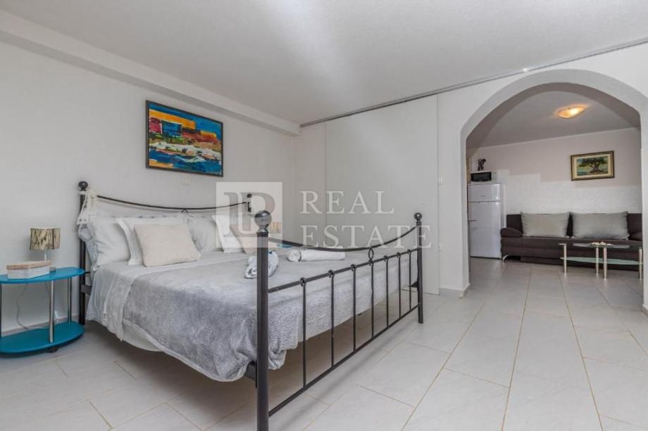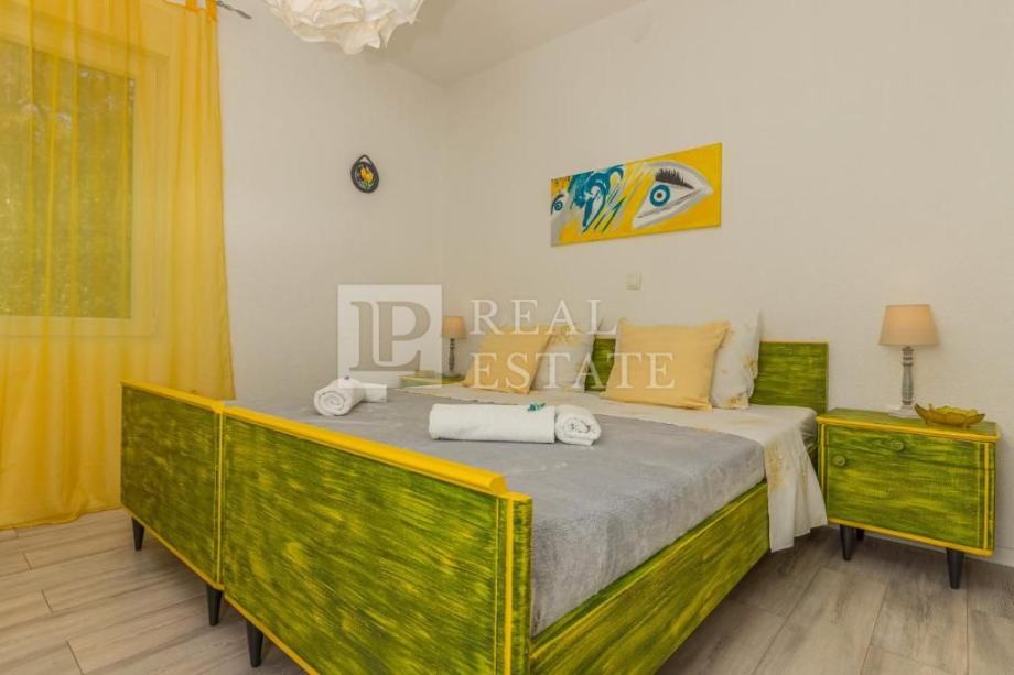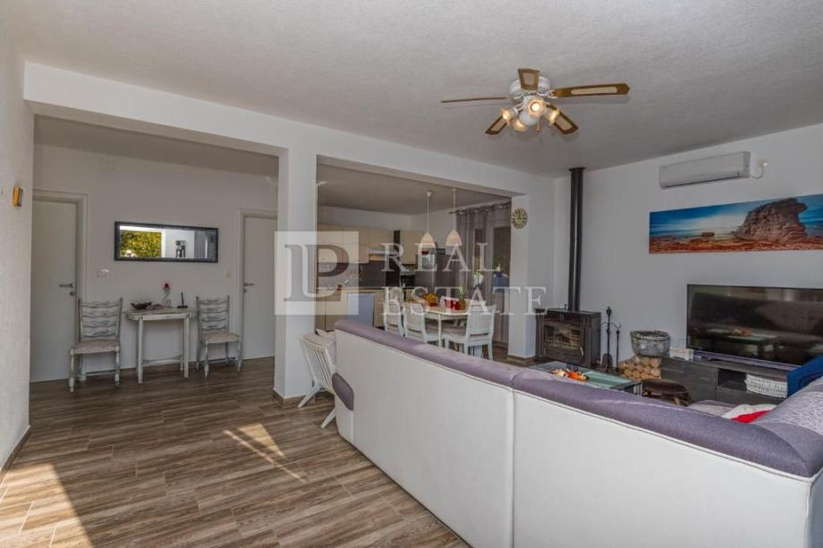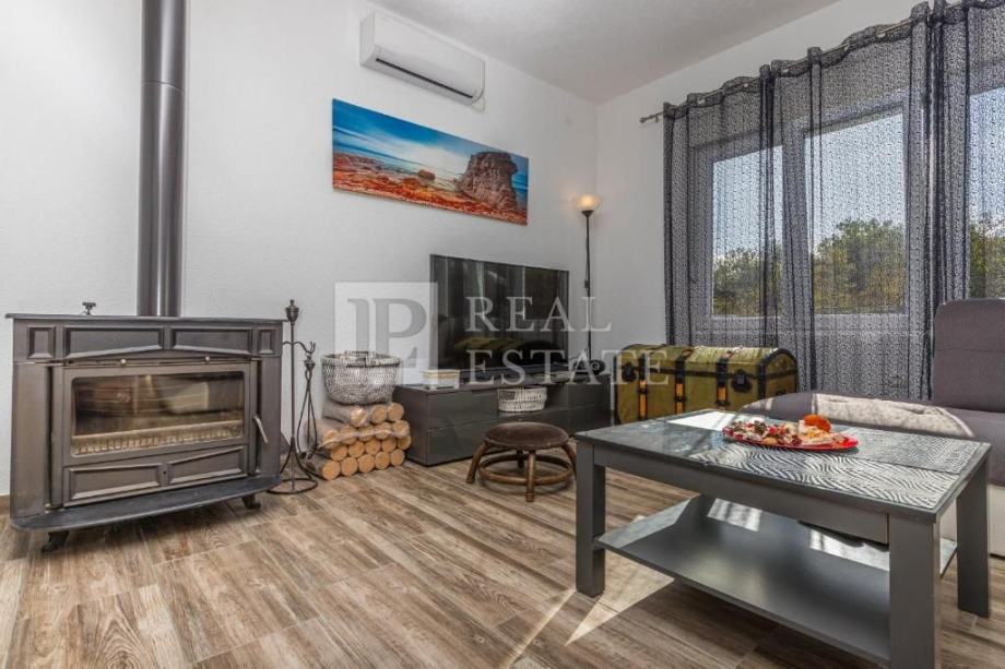 Stanovi su uređeni rustikalnim stilom, što ovoj nekretnini daje poseban šarm. Kuća je klimatizirana, u svim sobama su postavljene zidne grijalice na struju, a u stanu na katu nalazi se također i kamin na drva.
