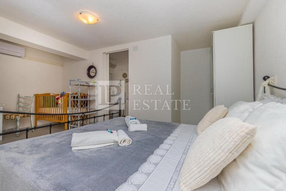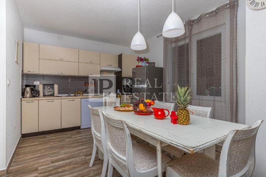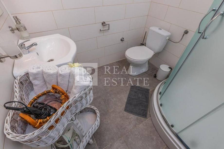 Vila je poptuno renovirana i namještena 2017. godine. Sastoji se od prizemlja i kata. U prizemlju se nalaze dvosobni stan, vešeraj i kotlovnica, dok je na katu stan površine 100 m2, koji se sastoji od komfornog dnevnog boravka i kuhinje s blagovaonom, dvije spavaće sobe, kupaonice, toaleta i terase.