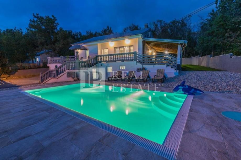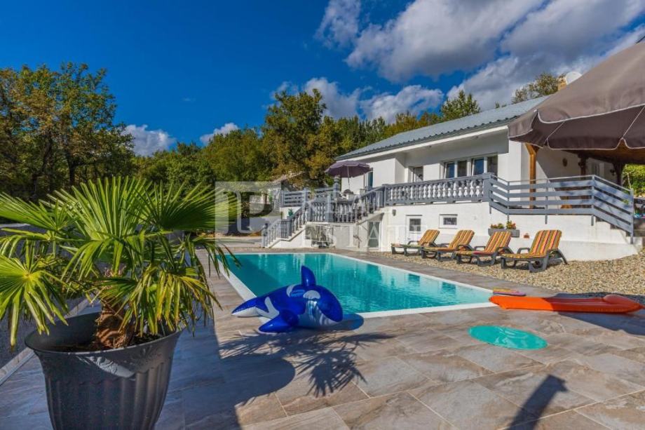 Okućnica je dodatno oplemenjena bazenom, uređenim vrtom, igralištem za djecu te parkingom za više automobila.