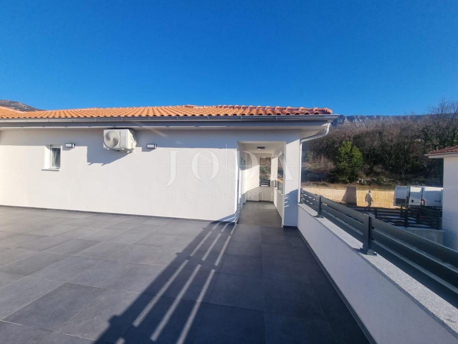 Predstavljamo stan na prvom katu novogradnje na mirnoj lokaciju u zeleđu Crikvenice. Stan se sastoji od 3 spavaće sobe, 2 kupaonice, prostranog dnevnog boravka sa kuhinjom. Stanu pripada terasa od 56m2 te jedno parkirno mjesto.