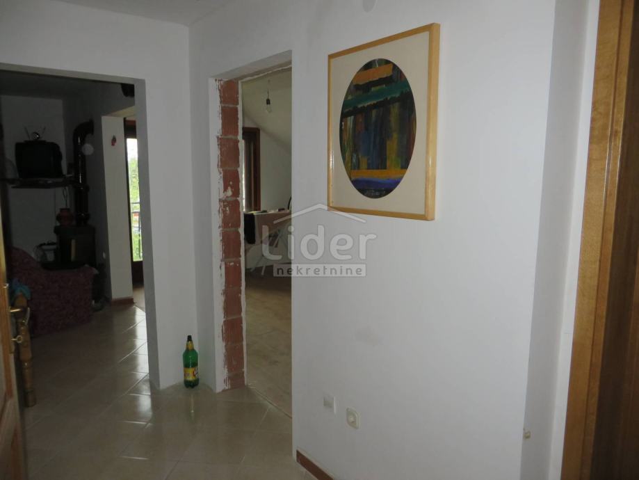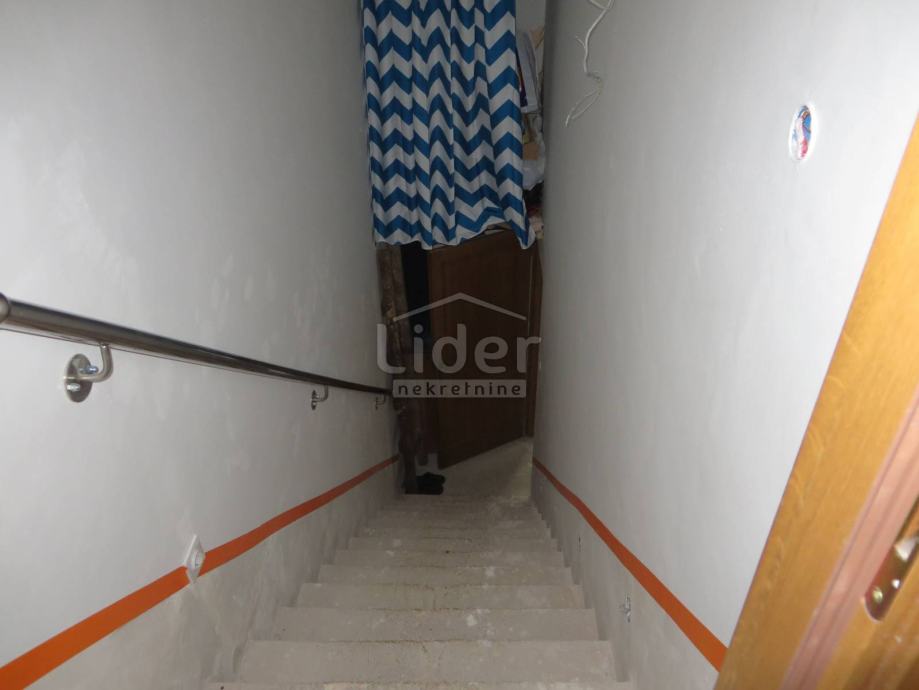 Odlična pozicija, uz samu prometnicu. Kuća se sastoji od prizemlja u kojem je garaža, i jednosobni stan, kata, na kojem je