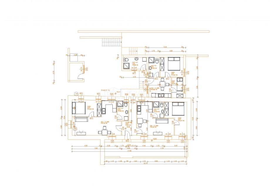 Nekretnina se sastoji od prizemlja i kata, ukupne površine 240 m2.