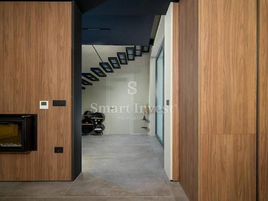 Ova elegantna vila s bazenom osigurava vrhunski životni standard, a svaki element interijera i eksterijera osmišljen je kako bi pružio udobnost i visoku estetsku vrijednost.
